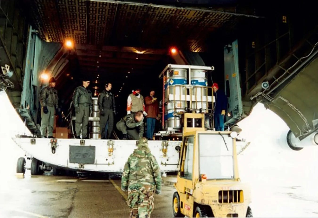 UF₆ cylinders weigh hundreds of kilograms and require specialized equipment for handling and secure transport. For comparison, during Project Sapphire in 1994, the U.S. extracted 600 kg of highly enriched uranium from Kazakhstan in a peacetime mission that took weeks of planning and involved heavy transport aircraft and coordination with Moscow.
